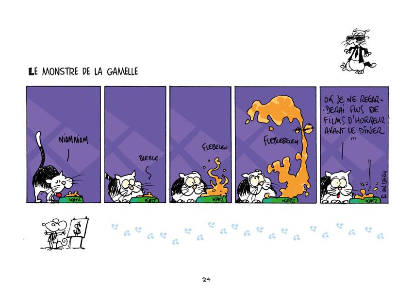 En bonus dans l'album : des petits dessins un peu partout, un strip "Katz vu par JFM" (avec Frenchy et Fanny), un rabat "very funny", un dessin animé (flip book) ...