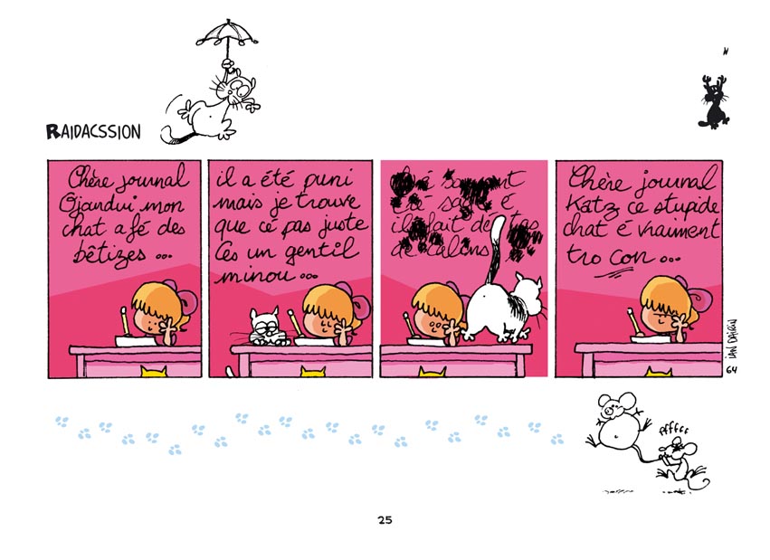 Une bande dessinée, sous forme de strips, hilarante, réalisée dans la pure tradition franco-belge ... et ... américaine (snoopy, calvin et hobbes, garfield ...) ... et ... avec un trait vivant et moderne ... hm ... en fait multi-traditions et très personnel à la fois ... bref, c'est génial !